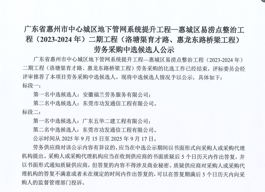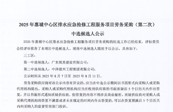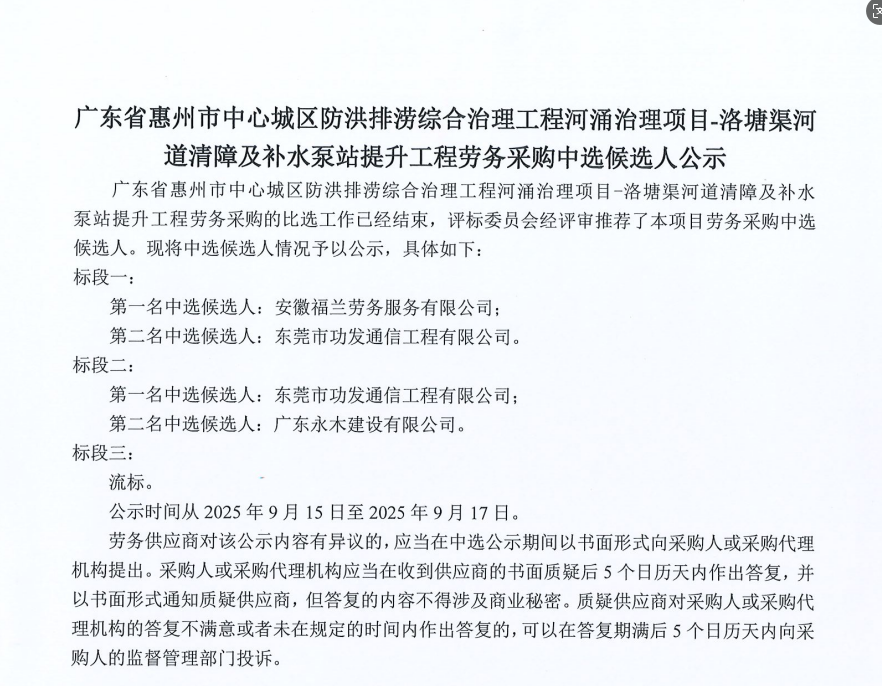惠州市水電建筑工程有限公司勞務供應商庫擴庫評審結果公示……